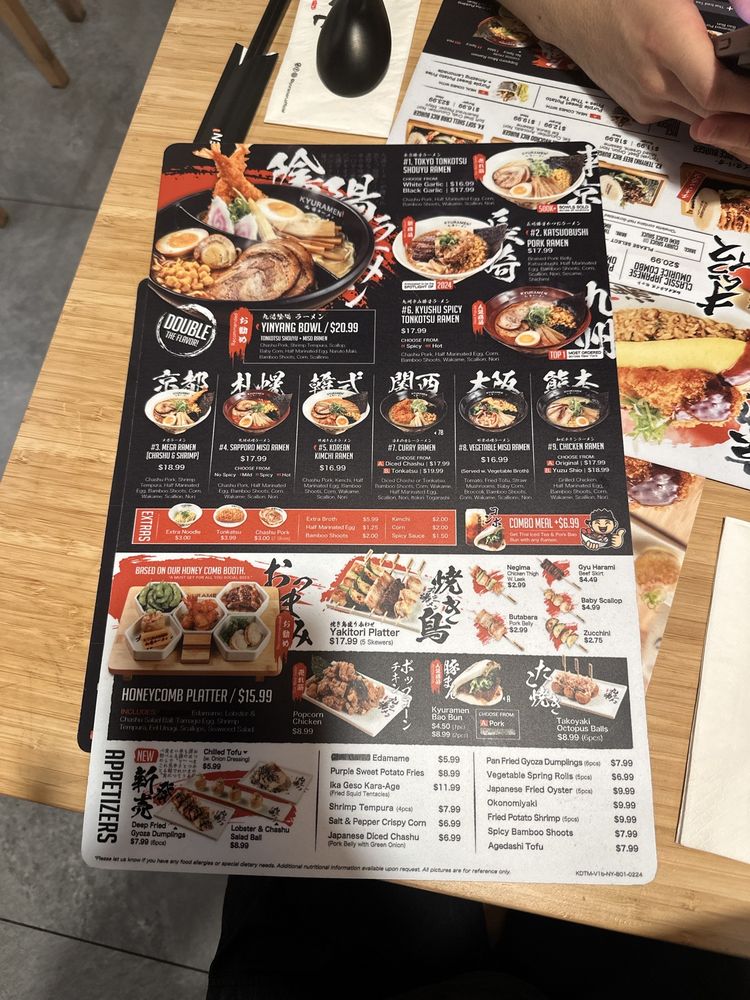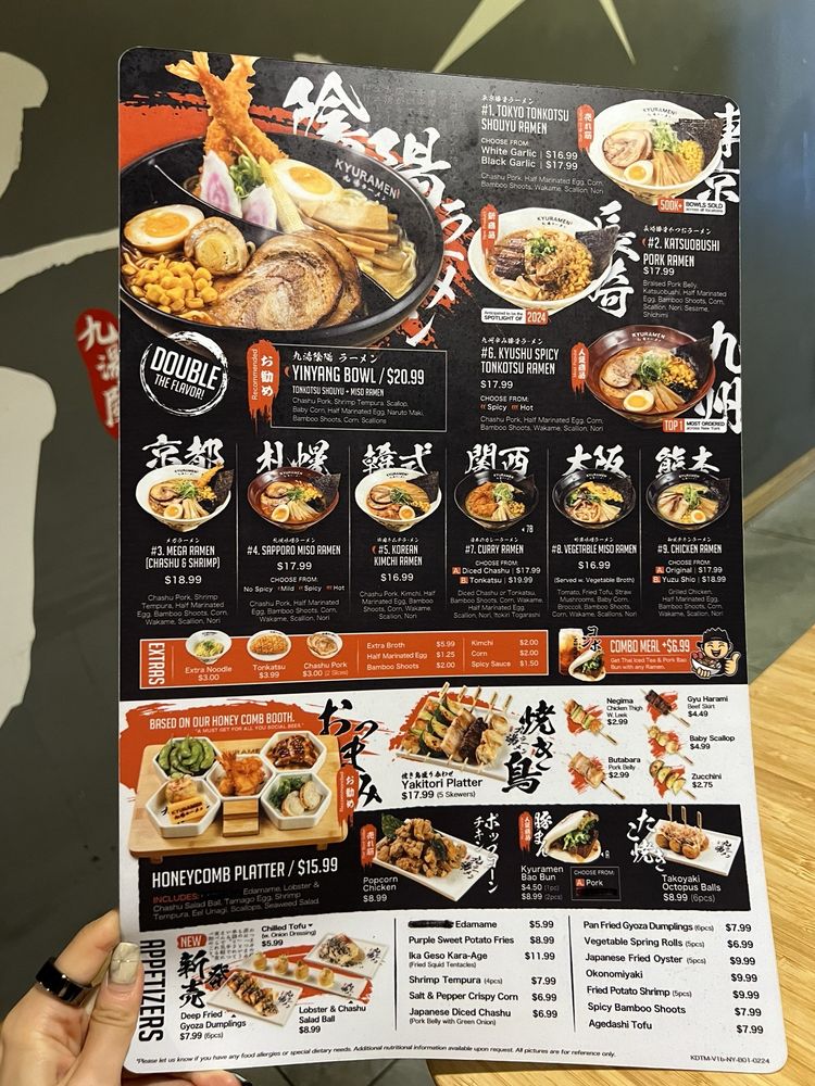 Kyuramen - Union, located in New York, offers a unique fusion of Japanese curry and ramen dishes. The menu includes a variety of appetizers like pan-fried gyoza dumplings and shrimp tempura, as well as Japanese udon options like shrimp wonton udon and tonkatsu curry udon. Dessert options such as matcha pudding and crepe cake provide a sweet ending to your meal. Customers rave about the flavorful dishes, with one mentioning the spicy tonkatsu ramen as a standout. The casual yet intimate ambiance, combined with excellent service, makes dining at Kyuramen - Union a pleasant experience. Overall, the affordable prices, veggie ramen options, and fast, friendly staff ensure a memorable dining experience at this trendy establishment.